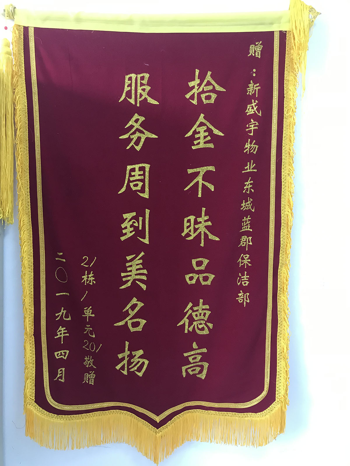 2019年4月贈(zèng)新盛宇東城藍(lán)郡項(xiàng)目保潔部